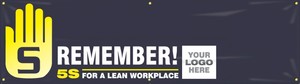 5S Campaign Banners Kick off your company’s 5S campaign with an interactive, motivational banner! Large 28" x 8-ft. writable banners allow employees to literally "sign up" to show their commitment to lean manufacturing. Each banner kit includes two contrasting color, fine point permanent markers. Additional markers available separately. Ropes included. Personalized options allow you to add a company logo and image to the standard stock layout. Simply send us your images, and we will provide you with a proof.