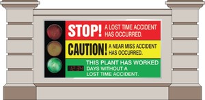 Monument Scoreboard Sign gives a dramatic effect to increase the visibility of your safety program to all those who walk and drive by your company. Attention-getting, light-up, LED-LITE™ Signal Scoreboard has a permanent placement on the grounds of your facility. It strengthens and identifies your company’s commitment to safety with elegance in a monument sign.