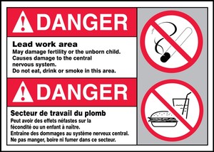 Bilingual ANSI Danger Safety Sign: Lead Work Area (English, Español)