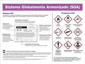 GHS Poster Poster displays GHS label and pictogram guidelines in a visual, straightforward style. The 18” x 24” plastic laminate poster displays easy-to-understand information, separated into sections, on GHS labels and pictograms.